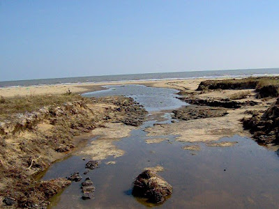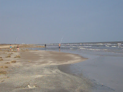 As I mentioned earlier in my semi-live post from McFaddin Beach, I was heartened to see that despite some horrendous erosion like that above, portions of the beach remain gorgeous and a good many folks were out enjoying McFaddin today. That is despite big chunks of highway are missing between Sabine Pass and McFaddin, plus one does not even want to ponder driving on the beach there without benefit of 4 x 4 and a wench, er a winch. Either way.