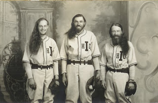 Pictured above are players of the barnstorming House of Davids team, a sort of baseball equivalent of the Harlem Globetrotters. The baseball team, featured players who grew very long hair and beards and who mainly fielded games in the rural U.S. from the 1920s to the 30s. The Davids were basically the fund-raising arm of a religious commune in Michigan which, in addition to abstaining from shaves and a haircut, also stayed away from sex and meat. As many times seems to befall such cults, the group was scandalized over alleged indiscretions by its leader. He was eventually banished from the colony.